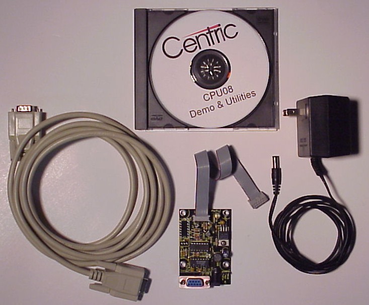 Prog08Kit Features:Programs CPU08 module using supplied 10 pin Ribbon Cable and power supply. Connects to PC using 9 pin M-F serial cable.